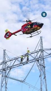 Å redde skadde montører ned fra høyspentmaster, er ingen enkel oppgave. Nå trener Norsk luftambulanse og høyspentmontører sammen for å lære hvordan slik helikopterredning utføres.